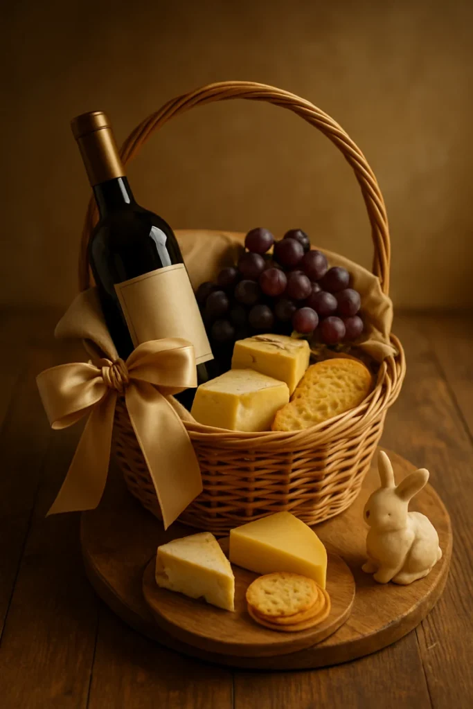 A wine and cheese basket is a classy and sophisticated Easter gift idea. Include a bottle of wine, gourmet cheeses, crackers, and maybe some fresh fruit like grapes or figs. This creates a perfect at-home date night or relaxation setup.