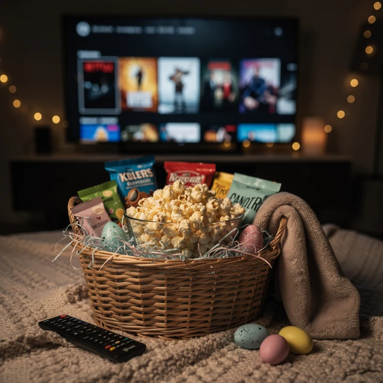 Create the ultimate movie night experience with popcorn, snacks, and a cozy blanket. This basket is all about comfort and relaxation, making it ideal for a chill Easter evening.