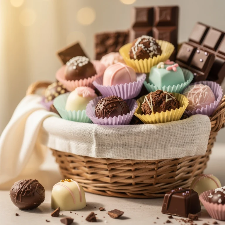 Indulge sweet cravings with a chocolate-themed basket. Include a mix of dark, milk, and flavored chocolates for variety. This is a simple yet universally loved idea.