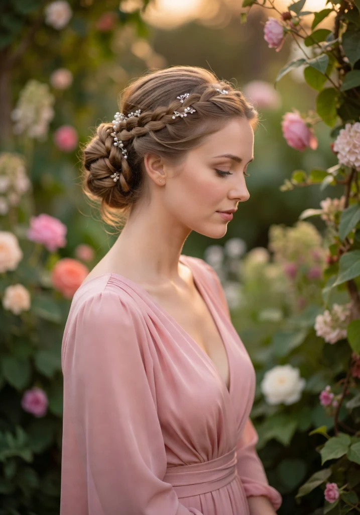 A low braided bun combines intricate detail with timeless elegance. Braids add texture and depth while the bun keeps the look refined. This hairstyle feels romantic and sophisticated.