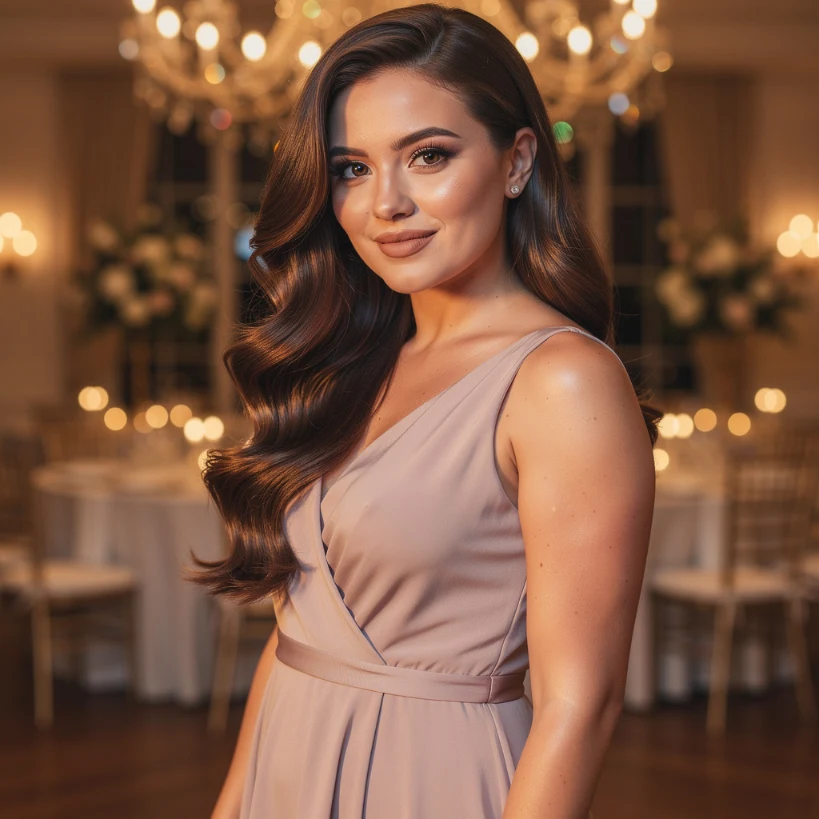This style works beautifully with veils, hair pins, or delicate flowers. It complements most dress necklines and suits both indoor and outdoor ceremonies. The elegance and versatility make it a favorite choice for bridesmaids who want effortless glamour.