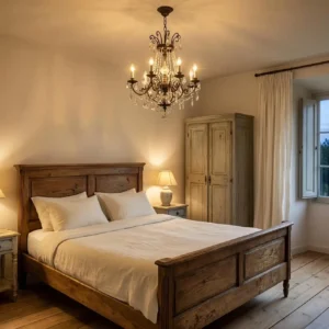 Antique-style furniture brings character and authenticity to the bedroom. Pieces with carved wood details or distressed finishes evoke the charm of historic French homes.