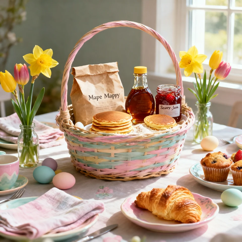 A breakfast-themed basket is both unique and practical. Include pancake mix, syrup, and small pastries for a delightful morning treat.