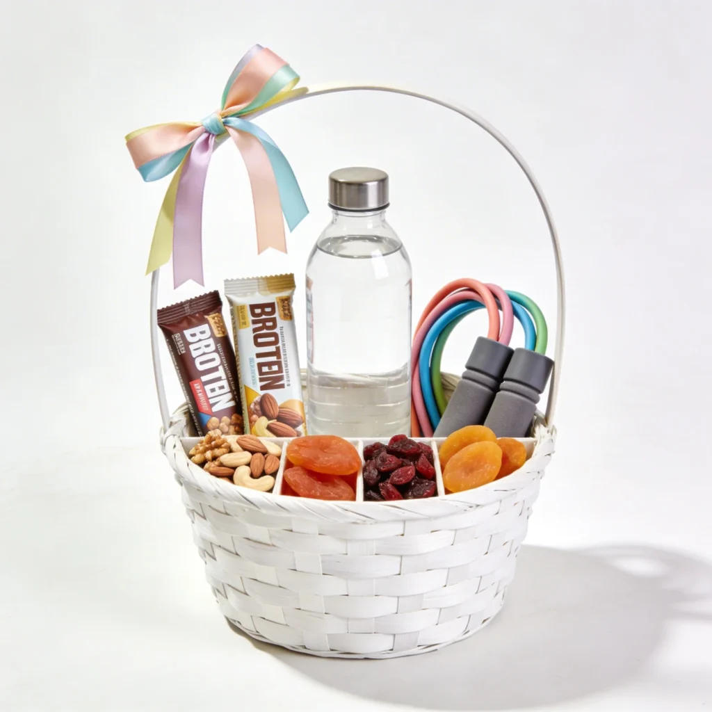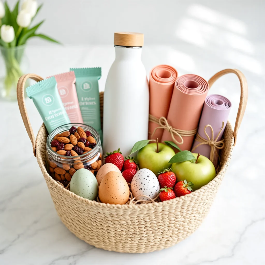 Encourage healthy habits with a fitness-themed basket. Include protein bars, a reusable water bottle, and maybe resistance bands. This is a thoughtful option for health-conscious coworkers.