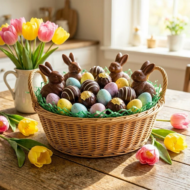 You can never go wrong with chocolate, especially during Easter. Fill the basket with a mix of premium chocolates, mini eggs, and fun bunny-shaped treats. Choose a variety of flavors like dark, milk, and caramel to suit different tastes.