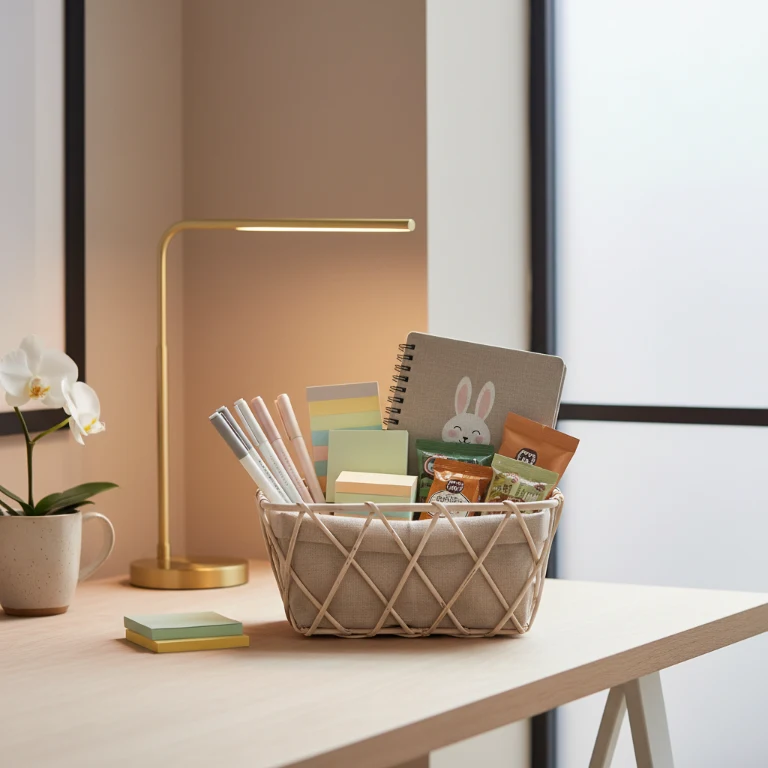 An office survival kit is both fun and practical. Include stylish stationery, snacks, and maybe even a mini planner or desk accessory. This idea blends Easter cheer with everyday usefulness, making it a thoughtful gift.
