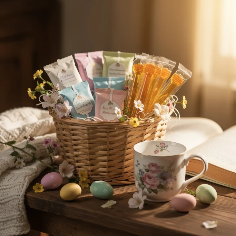 A tea-themed basket is perfect for coworkers who prefer calm and cozy vibes. Include herbal teas, green teas, and sweet add-ons like honey sticks or cookies.