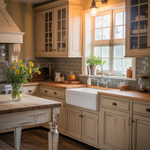 6. Farmhouse Beige Kitchen Cabinets
