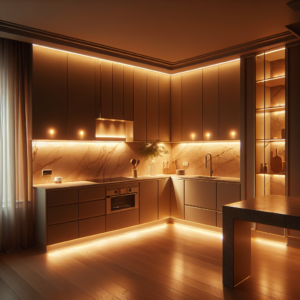 When paired with marble backsplashes or textured tiles, the lighting highlights design details beautifully. It also improves task visibility while cooking or entertaining. This approach is ideal for homeowners who want their kitchen to feel intimate and welcoming, especially in open-concept homes where lighting plays a key role in overall mood.