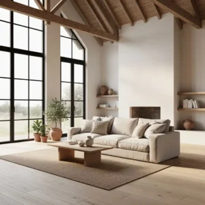 Soft neutral palettes enhance the calm atmosphere of barn homes. Shades of cream, beige, and warm gray reflect natural light and complement stone and wood materials beautifully. The restrained color scheme keeps interiors feeling serene.