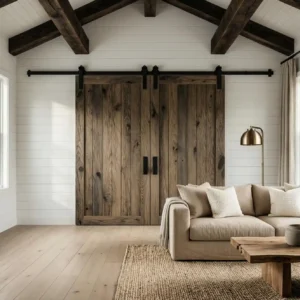 Sliding barn doors combine practicality with countryside charm. Their rustic wood texture adds warmth while saving space compared to traditional hinged doors. In modern homes, sleek hardware keeps the look contemporary.