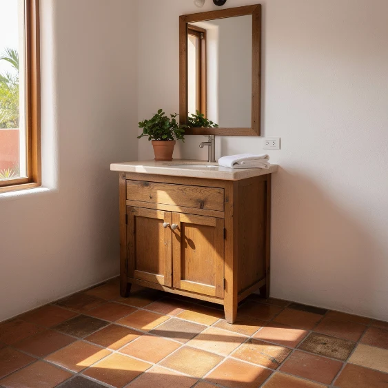 Saltillo tiles bring rustic warmth and earthy character to bathrooms. Their rich terracotta tones create a cozy foundation that pairs beautifully with white or cream walls.