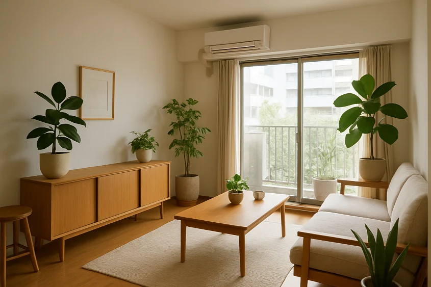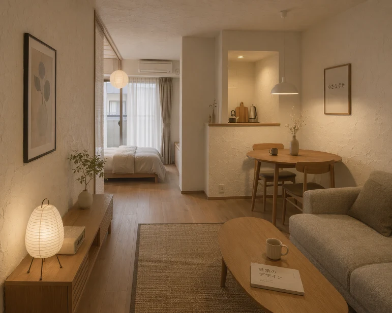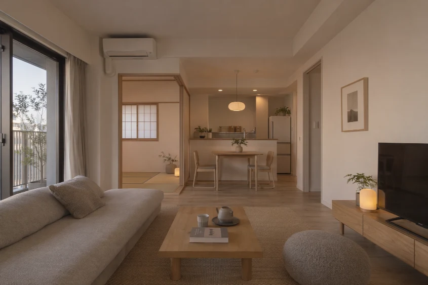 Add texture through linen cushions, woven rugs, and ceramic decor. Keep furniture low and streamlined to avoid visual clutter. This simple yet elegant combination reflects the peaceful atmosphere found in modern Japanese apartments.
