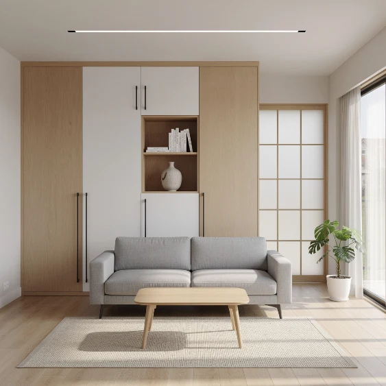 Shoji-style sliding doors are perfect for flexible apartment layouts. They allow spaces to be opened or closed depending on daily needs, while still letting light flow throughout the home. This keeps small apartments feeling bright and adaptable.