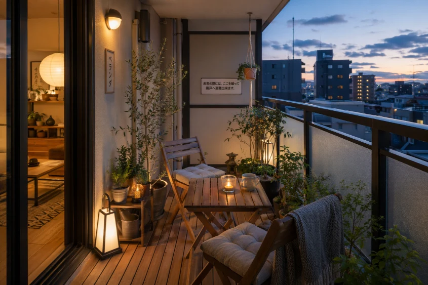 Even a tiny balcony can become a peaceful retreat. Add wooden decking, a small chair, and greenery to create a mini Zen space. The outdoor view enhances relaxation.