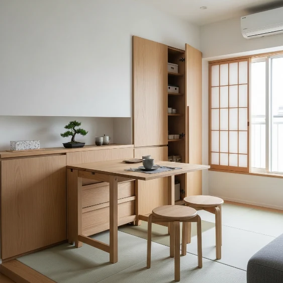 Multi-functional furniture is essential in compact spaces. Foldable tables, storage benches, and convertible seating maximize usability without cluttering the room. Each piece serves multiple purposes.