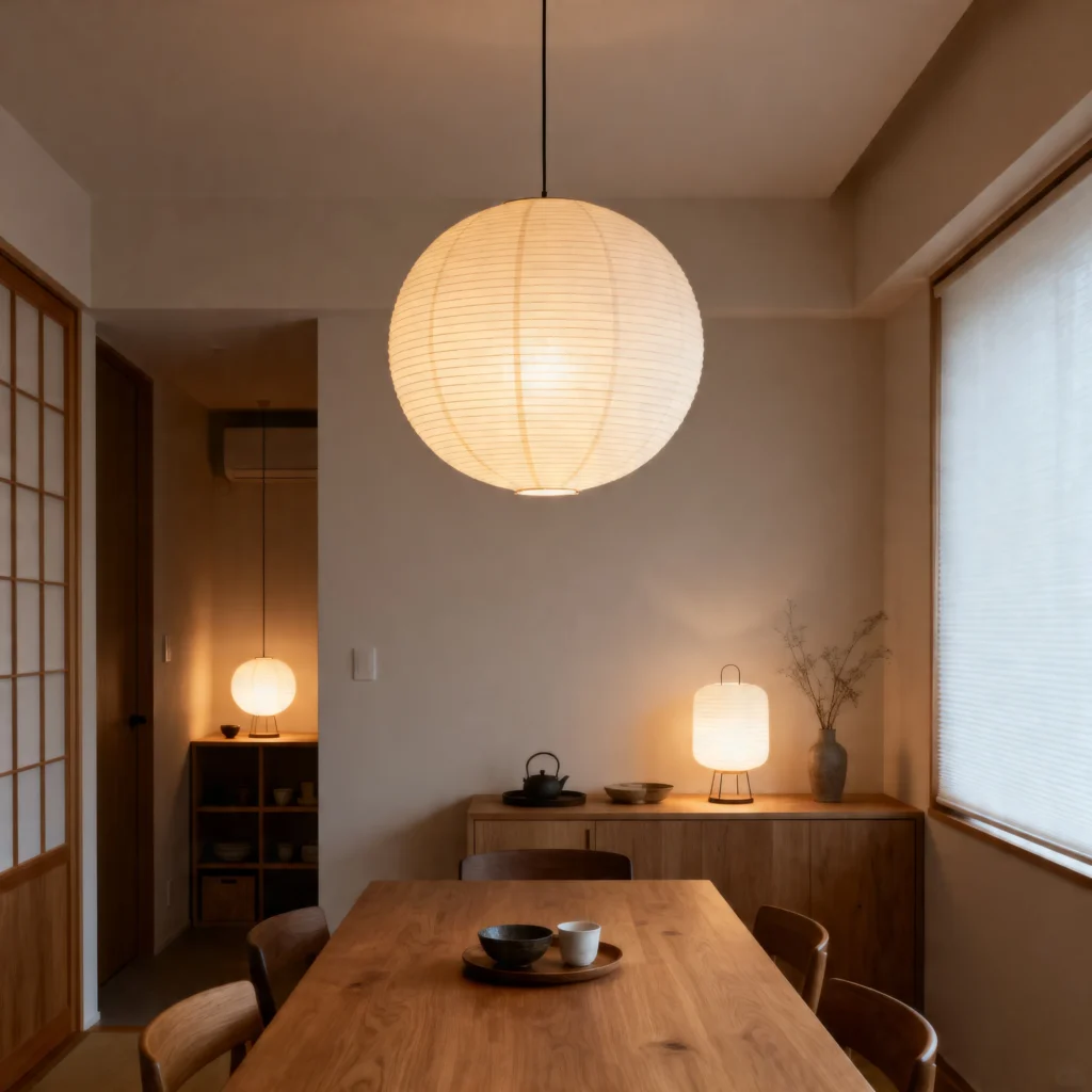Paper lantern lighting creates a cozy and peaceful atmosphere. The soft glow diffuses light gently, making small spaces feel inviting. Simple sculptural shapes add elegance without heaviness.