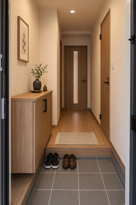 Add a small bench or simple artwork for warmth. Keep décor minimal to avoid clutter. This organized entrance reflects mindful living.