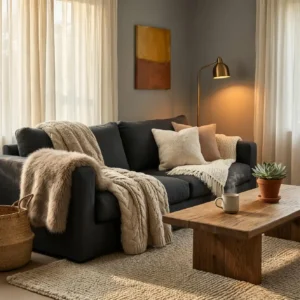 Throw pillows are a simple yet powerful way to add comfort and personality. Mixing different sizes and textures instantly makes a sofa look more inviting. Soft fabrics like velvet, wool, and cotton enhance the cozy atmosphere.