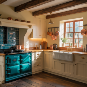An English country kitchen embraces warmth, practicality, and heritage charm. Shaker cabinets in cream or muted tones set a timeless foundation, while butcher block countertops introduce natural texture. An apron-front sink and traditional range cooker anchor the room, creating a functional yet picturesque space that feels straight out of a countryside cottage