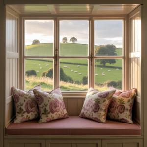 A built-in window seat is a charming feature often found in English country homes. Cushioned with floral or striped fabrics, it creates a cozy nook perfect for reading or enjoying tea. Positioned near large windows, it captures natural light and highlights scenic outdoor views.
