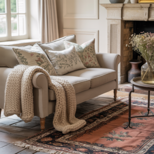 Layering textiles is essential to achieving the warmth of an English country home. Combine patterned cushions, knitted throws, and soft linen upholstery to create depth and comfort. Mixing subtle florals with stripes or plaids adds visual interest without overwhelming the neutral palette.