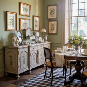 Incorporating painted sideboards, cabinets, or dressers creates focal points without overpowering the room. These pieces pair beautifully with natural wood tables and antique accessories. The result is a harmonious blend of rustic charm and understated elegance that feels both curated and comfortable.