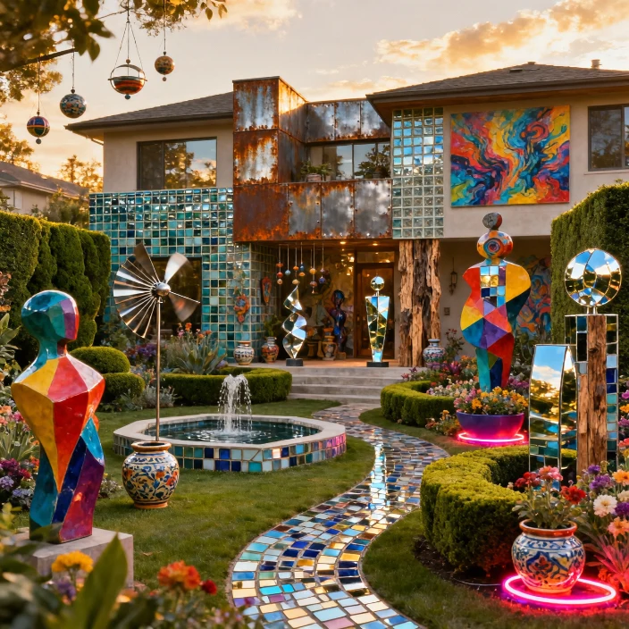 These elements bring personality and storytelling to the home. Positioned strategically, they enhance architectural features. This approach turns the exterior into a living, evolving art space.