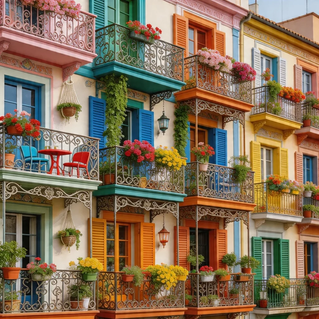 Balconies in maximalist design are expressive and detailed. Ornate railings, bold colors, and layered structures make them stand out as architectural features.