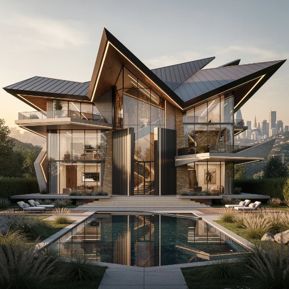 This architectural complexity adds movement and personality to the structure. Combined with bold materials or colors, the roofline becomes a focal point. It ensures the home stands out even from a distance, creating a powerful first impression.