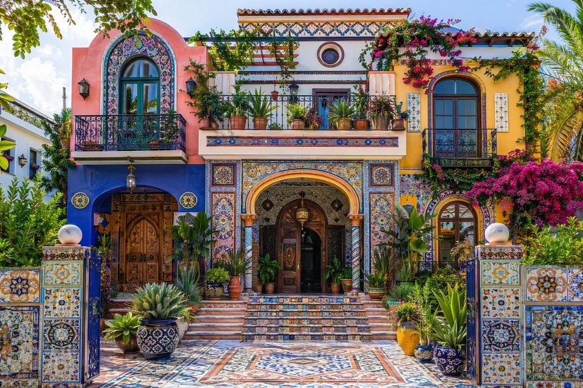 Patterned tiles bring vibrancy and cultural richness to maximalist architecture. From geometric mosaics to floral-inspired designs, tiles can transform walls, entryways, or patios into artistic surfaces. This approach adds storytelling through texture and pattern.