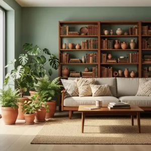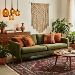 Balance these rich colors with neutral walls and simple furnishings. Wooden furniture enhances the palette’s organic feel. Designers often use this combination to evoke vintage warmth.