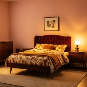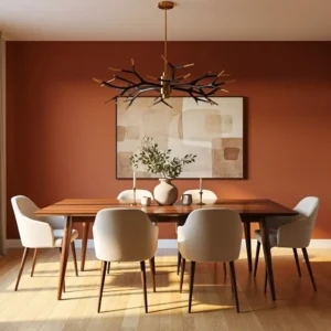 Incorporate wood furniture and simple décor to maintain the mid century aesthetic. This palette works especially well in living rooms where bold accents can shine without overwhelming the space.