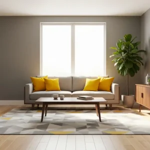 Golden yellow combined with gray creates a vibrant yet balanced palette. The bright yellow tone adds energy while gray provides a calming backdrop.