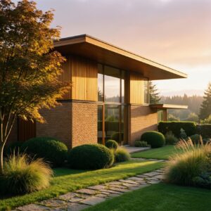 Color choices tend to lean warm and earthy, complemented by pops of retro hues like teal or mustard at the front door. Landscaping remains simple, often featuring trimmed shrubs and curved pathways that echo the era’s optimism. This style feels nostalgic yet incredibly livable, proving that mid century charm never truly goes out of fashion.