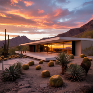 Strategic landscaping with native plants ensures low maintenance while enhancing authenticity. Gravel paths and sculptural succulents add texture without clutter. This style feels serene and intentional, offering a strong connection between structure and setting that makes every sunset feel like part of the home’s design.