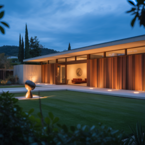 Strategic exterior lighting enhances the structure’s geometry at night, creating a moody yet sophisticated ambiance. Modern landscaping with ornamental grasses complements the sleek finish. This updated interpretation respects classic design principles while giving them a fresh, Pinterest-worthy twist.