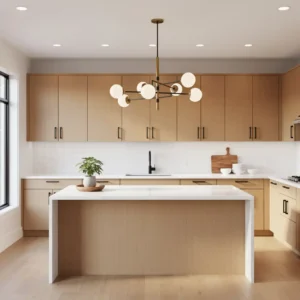 Choose warm wood finishes or soft painted tones for authenticity. Pair with slim handles or hidden hardware to maintain a sleek appearance. The result is a kitchen that feels organized, modern, and timelessly elegant.