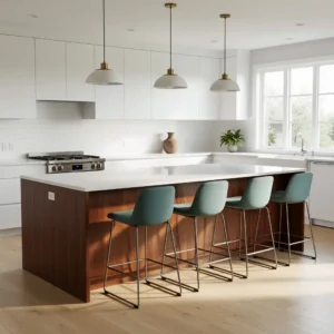 Pair the island with retro-style bar stools in bold colors or simple leather finishes. Keep surrounding elements minimal to highlight the island’s design. This feature enhances both functionality and visual impact.