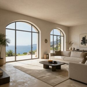 Arched openings are a defining Mediterranean detail that instantly soften a space. In modern homes, oversized arches with slim frames create architectural interest without heavy embellishment. They allow natural light to flow freely, enhancing the open and relaxed atmosphere.
