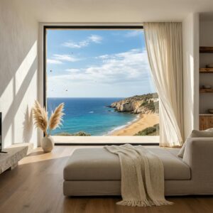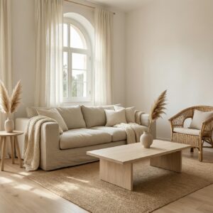 Layer textures such as linen, cotton, and rattan to add warmth. Avoid heavy or overly bold colors to preserve the airy mood. The result is a calm, cohesive interior that feels fresh and effortlessly stylish.