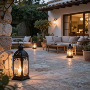 Wrought iron lighting introduces traditional charm with a modern twist. Lantern-style fixtures create a romantic ambiance, especially in outdoor spaces. Their dark finish contrasts elegantly with light walls.