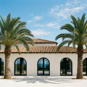 Inside, keep furnishings minimal and neutral to let the arches shine. Light wood, linen upholstery, and stone flooring complete the look. The gentle curves balance sleek modern lines, creating a harmonious blend of old-world romance and contemporary simplicity.