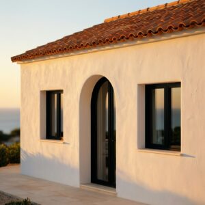 Terracotta roof tiles add warmth and authenticity to modern Mediterranean homes. Their rich, earthy tone contrasts beautifully with white or cream stucco walls. Even in updated designs, this classic roofing choice preserves the regional charm.