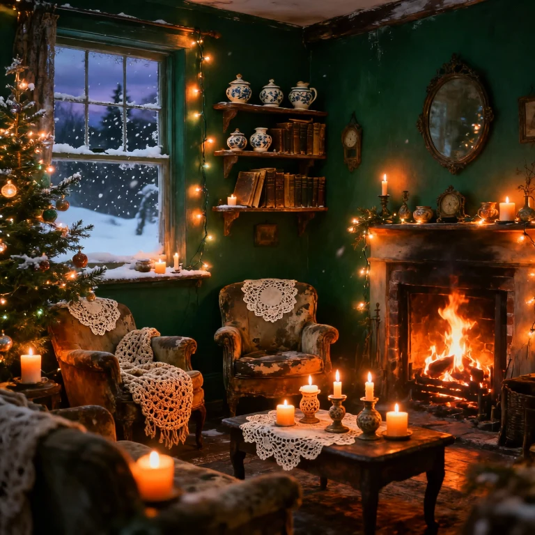 Keep the palette rich and warm to avoid modern shine. The vintage finish enhances the nostalgic holiday mood perfectly.