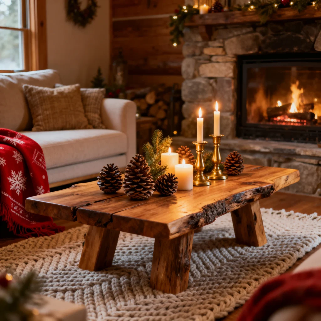 Style a rustic wooden coffee table with seasonal decor. Use candles, pinecones, and small wreaths for a festive centerpiece. Natural textures keep the cottagecore vibe authentic.