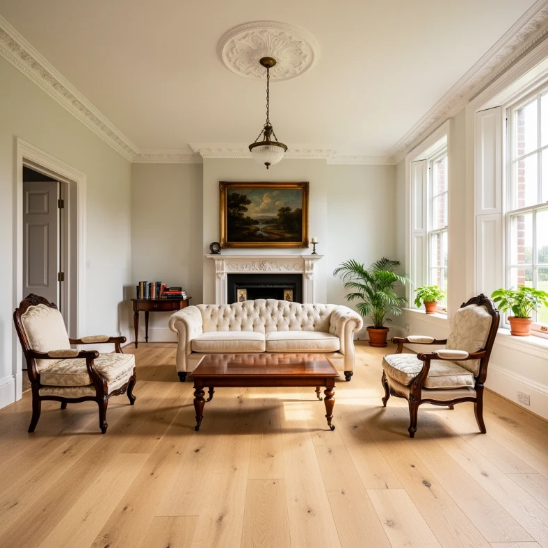 Light wooden floors reflect natural light and make the room feel larger. Oak or pine finishes work beautifully in Edwardian interiors, offering warmth without heaviness. This choice enhances both brightness and continuity throughout the space.