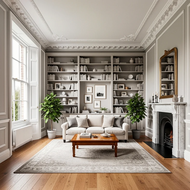 Built-in shelving maximizes storage while maintaining a clean and cohesive look. Incorporating classic details like molding or wood finishes ensures the shelves blend seamlessly with the Edwardian style. This approach keeps the room organized without sacrificing space.