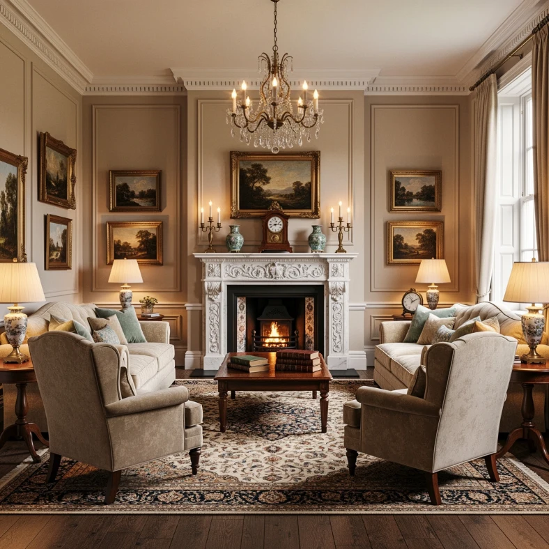 Artwork adds personality and depth to the living room. A curated gallery wall with classic paintings or prints complements the Edwardian aesthetic. Keeping the arrangement balanced ensures the room remains visually open.