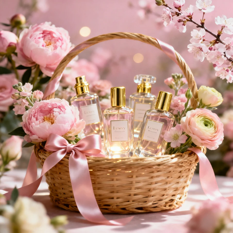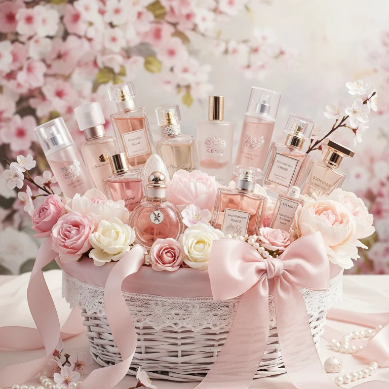 A fragrance basket feels feminine and special. Include perfumes or body sprays with floral scents.